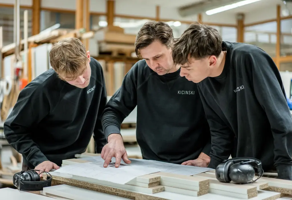 Nichts ist bei einem Projekt wichtiger als miteiander zu reden. Deshalb sprachen wir Ihre Sprache. Und zwar die Umgangssprache, weil wir aus der Branche kommen. Die Projektleiter mit denen Sie reden, sind erfahrene Schreinermeister, Techniker HF, Holzbauingenieure FH oder Betriebswirte. Das spart Erklärungen und führt uns schneller zu einer gemeinsamen Lösung. Um den Anschluss an die Zukunft zu sichern, arbeiten wir eng mit Hochschulen zusammen und bilden laufend Praktikanten aus. So holen wir um aktuelles Forschungswissen ins Unternehmen und geben es unmittelbar weiter. Was uns aber wirklich verbinden wird, ist die Freude am Job und die Arbeit mit faszinierenden Werkstoffen. Das sorgt auch intern bei uns für einen starken Teamspirit und dafür, dass wir überdurchschnittlich viele langjährige Mitarbeitende haben. Für Sie bedeutet das: Stabile, vertraute Ansprechpartner, die Ihr Unternehmen und Ihre Geschichte über Jahre hinweg kennen und begleiten.